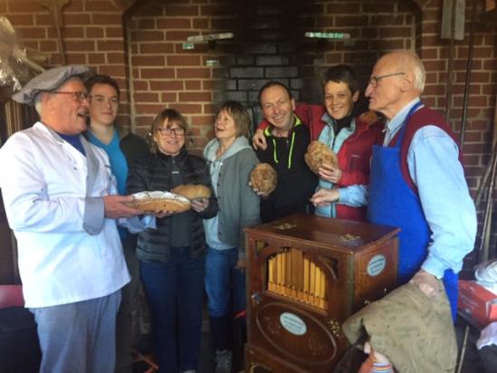 Neugierig kam ich zum Backtag der Backhausgruppe. Walter hatte mir stolz erzählt, dass seine Gruppe drei "Neuzugänge" aufzuweisen hätte. Und genau darüber wollte ich schreiben. Wer sind die "Neuen"? Zuerst einmal lernte ich Angelika und Otto Cyriax aus Kassel kennen. Sie hatten von der Backhausgruppe gehört und wollten unbedingt mittun. Beide sind Sozialarbeiter, Angelika arbeitet im Jobcenter in Kassel, Otto ist Geschäftsführer des Psycho-Sozialen Zentrums Schwalm-Eder-Nord. Jetzt haben sie mittlerweile dreimal mitgebacken und sind begeistert: „Toll, dass es die NaturFreunde gibt“. Die Dritte im Bunde ist Heike Dittrich-Beckmann aus Fritzlar. Sie ist gleichzeitig Mitglied bei den Kanut*innen und freut sich schon auf einen schönen Paddel-Sommer. Heike war heute das erste Mal beim Backen dabei und fühlte sich sofort aufgehoben. Als es dann zum Mittagessen auch noch Rehkeule, gebacken im Holzbackofen gab, war das Glück für alle perfekt. Leo, unser jüngster Bäcker, hat inzwischen seine Ausbildung zum Jäger abgeschlossen und präsentierte stolz seine Beute. So viel Glücklichsein kann sich doch nur auf Stollen und Brote übertragen, und so kam es, dass alles wieder vorzüglich gelungen war und reißenden Absatz fand. Auf ein Neues am 15. Dezember im Backhaus der NaturFreunde!